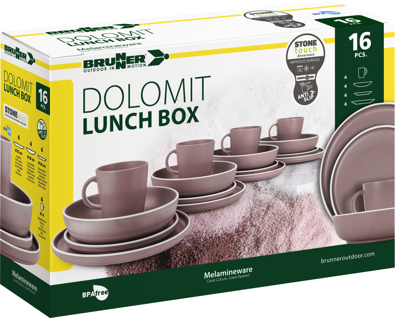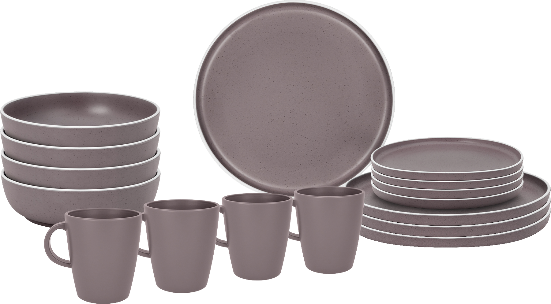 16-teiliges Set bestehend aus 4 Esstellern ø 26 cm, 4 Suppentellern ø 21 cm, 4 Desserttellern ø 21 cm und 4 Henkelbechern 0,3 l.