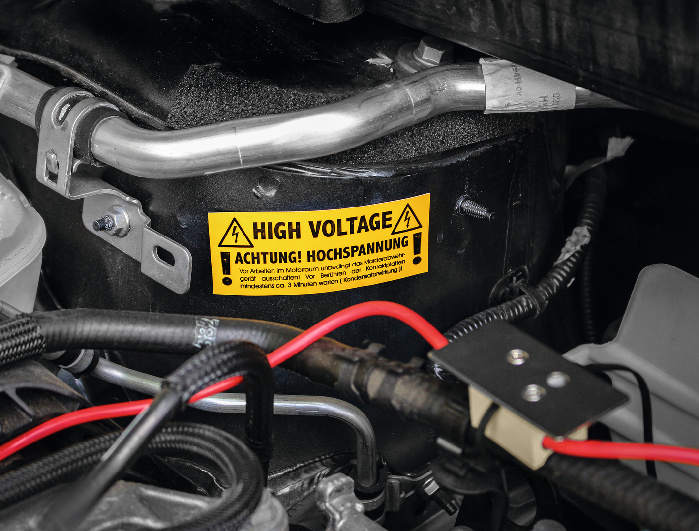 Für Pkw und Wohnmobil. Hochwirksames Gerät zur Vermeidung von Marderschäden im Motorraum. Mit 6 Kontaktplatten, die einen ungefährlichen, aber kräftigen elektrischen Schlag abgeben. Flache und platzsparende Bauweise. Piezo-Lautsprecher mit pulsierendem Ultraschallton. Abstrahlwinkel 160°. Funktionskontrolle: