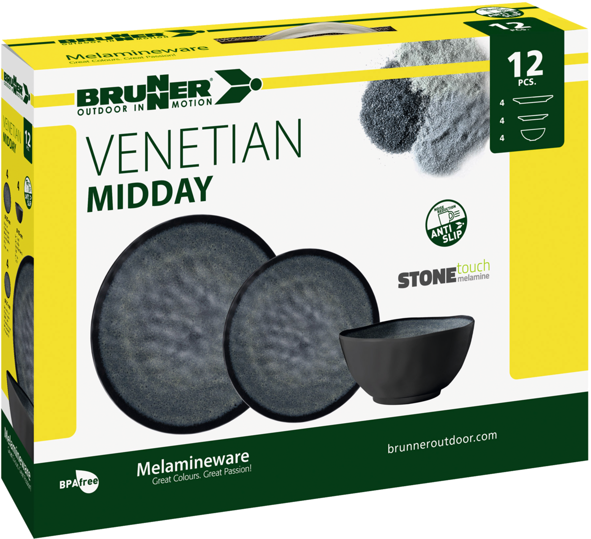 Midday-Set VENETIAN. 12-teiliges Set bestehend aus 4 Esstellern ø 25 cm, 4 Desserttellern ø 21 cm und 4 Schüsseln ø 15 cm.