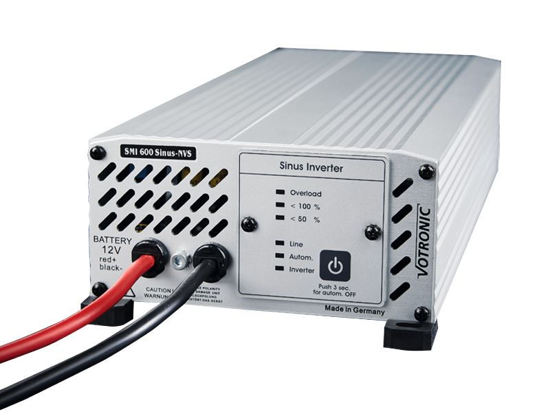Sie sind problemlos für alle handelsüblichen 230 V-Verbraucher geeignet. Als Besonderheit sind alle VOTRONIC-Wechselrichter auch mit integrierter Netzvorrangschaltung erhältlich. Ein eingebautes Sicherheitsrelais sorgt dafür, dass es nicht zur Kollision zwischen den beiden Betriebsarten kommt. Wird der Landstrom am Fahrzeug angeschlossen, werden die internen 230 V-Steckdosen automatisch mit Landstrom versorgt und der Wechselrichter abgeschaltet. Trennt man das Fahrzeug vom Landstrom, wird der Wechselrichter wieder automatisch mit dem 230 V-Bordnetz verbunden. Die hohe Qualität der VOTRONIC-Wechselrichter macht sich nicht nur durch den problemlosen Betrieb empfindlicher Verbraucher bemerkbar, sondern auch durch die üppig dimensionierte Leistungselektronik, die hohe Spitzenleistungen für Geräte mit hohen Anlaufströmen bereitstellt. Um die Bordbatterie nicht unnötig zu belasten, verfügen alle VOTRONIC-Wechselrichter über eine intelligente Stromsparfunktion, die je nach Einstellung automatisch den Stromverbrauch reduziert oder den Wechselrichter rechtzeitig abschaltet. Das anwenderfreundliche Bedienteil des Gerätes gibt nicht nur Auskunft über die aktuelle Leistung und die Betriebsart des Gerätes, sondern kann als Fernbedienung an jeder gewünschten Position im Fahrzeug montiert werden.