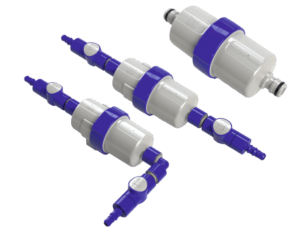 Mit den innovativen Schnellkupplungen des Leitungssets kann der Filter schnell und einfach gewechselt werden – ohne dass es nass wird.