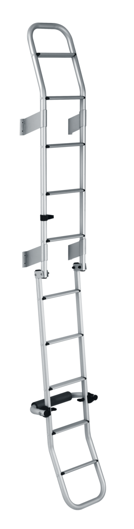 Einklappbare Doppelleiter für die Rückwandmontage.