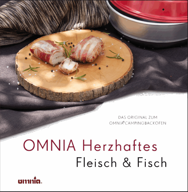 OMNIA Kochbuch – Herzhaftes Fleisch & Fisch. Die besten Fleisch- und Fischgerichte in einem Buch. Alle Rezepte wurden extra für den OMNIA Camping- backofen entwickelt und sorgen unterwegs für höchste kulinarische Genüsse. Die variantenreichen Rezepte werden Schritt für Schritt einfach erklärt. Auch dabei: Praktische Tipps zu Grundtechniken und Anwendung des Backofens. 64 Seiten.