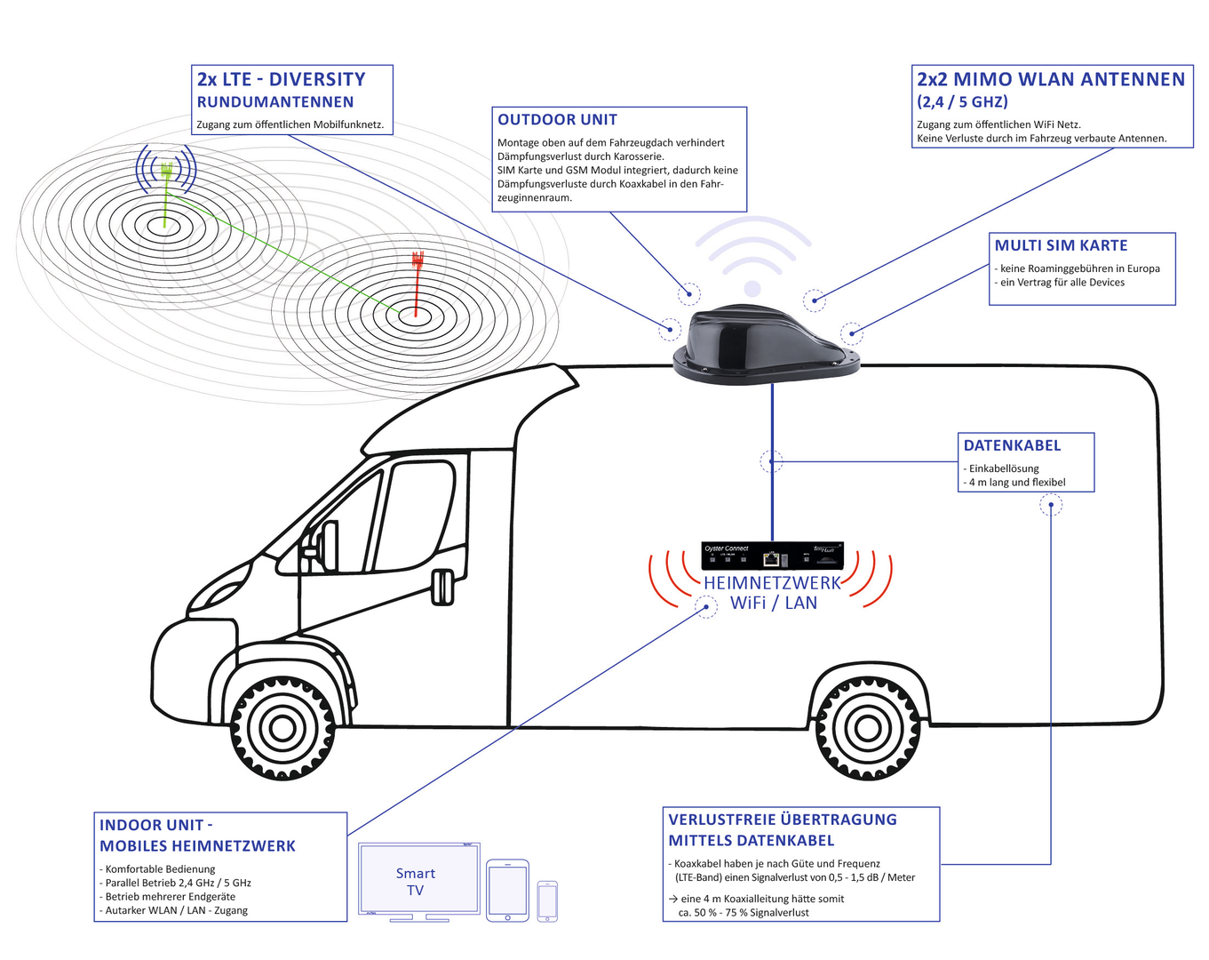 Mit dem Oyster® Connect hat ten Haaft ein spezielles Antennensystem für gehobene Ansprüche entwickelt: der mobile Hotspot sorgt für ein stabiles Signal – sogar während der Fahrt.