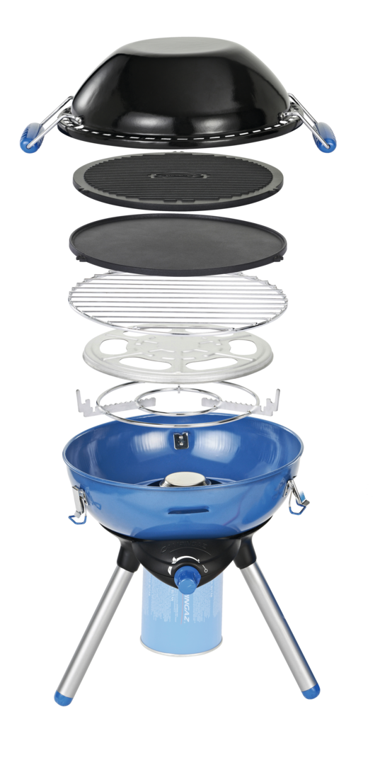 Party Grill™. Die Geräte der Linie Party Grill™ sind eine multifunktionale Alternative zu traditionellen Kochern und kompakten Grillgeräten. Sie sind im Nu vom Kocher zum Grill umfunktioniert, sind einfach zu reinigen und in Ausführungen für den Betrieb mit Propan-, Butangasflaschen oder Ventilkartuschen erhältlich. Alle Komponenten können im Inneren des Kochers gelagert werden um den Transport und die Lagerung zu vereinfachen.