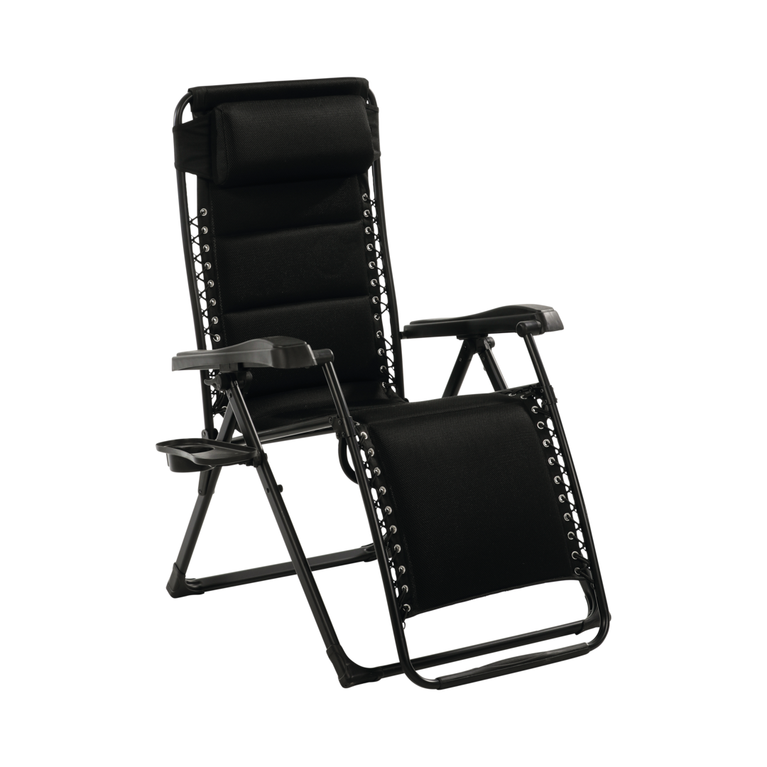 Zum Beispiel mit abnehmbarem Kopfpolster und Becherhalter. Der Stuhl verfügt zudem über einen komfortablen und schnell trocknenden 2D-Mesh-Bezug (100 % Polyester). Dank des kompakten, klappbaren Designs können Sie den Stuhl bequem mitnehmen.