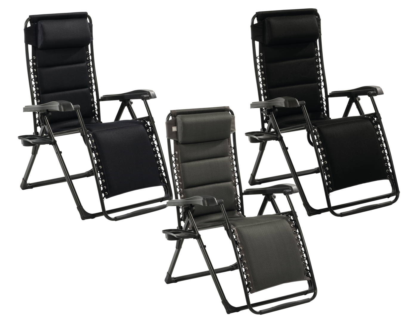 Zum Beispiel mit abnehmbarem Kopfpolster und Becherhalter. Der Stuhl verfügt zudem über einen komfortablen und schnell trocknenden 2D-Mesh-Bezug (100 % Polyester). Dank des kompakten, klappbaren Designs können Sie den Stuhl bequem mitnehmen.