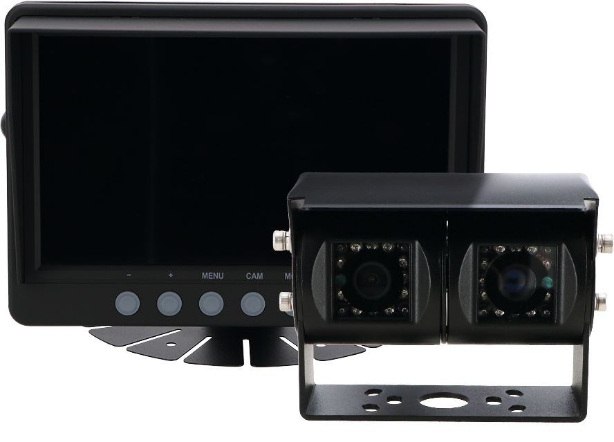 7″ LCD-Farbmonitor, Bildhelligkeit 400 cd/m², Auflösung 300.000 Pixel, Betriebsspannung 12/24 V, Spiegelfunktion, Lautsprecher, Sonnenschutzblende, inklusive Fernbedienung.