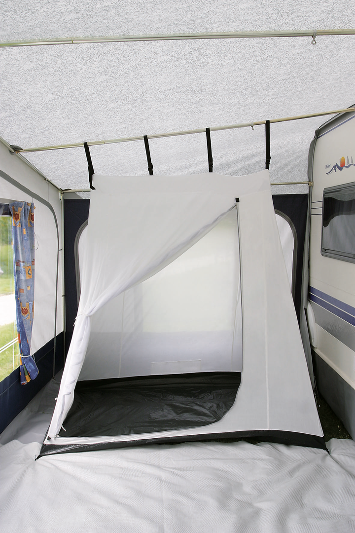 Leichtes Zeltgewebe, wasserdichte Bodenwanne aus beidseitig beschichtetem Bändchengewebe (100 % Polyester), verstellbare Bindebänder, Innentasche zur Aufbewahrung