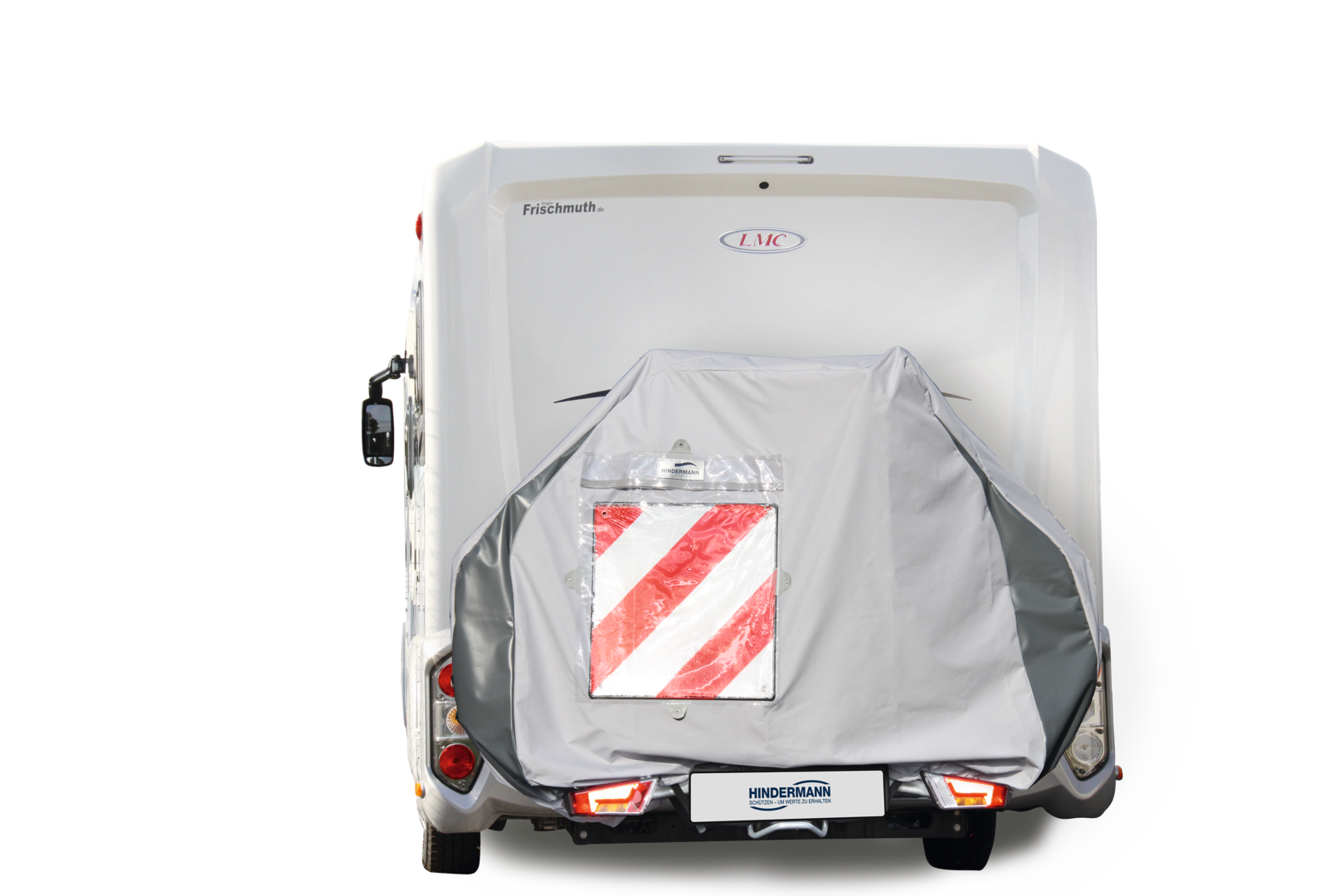 Die Schutzhülle ist in erster Linie für auf Deichseln montierte Fahrradträger konzipiert, aber durch die Kastenform ist sie universell einsetzbar, z. B. für Motorroller auf der Bühne.