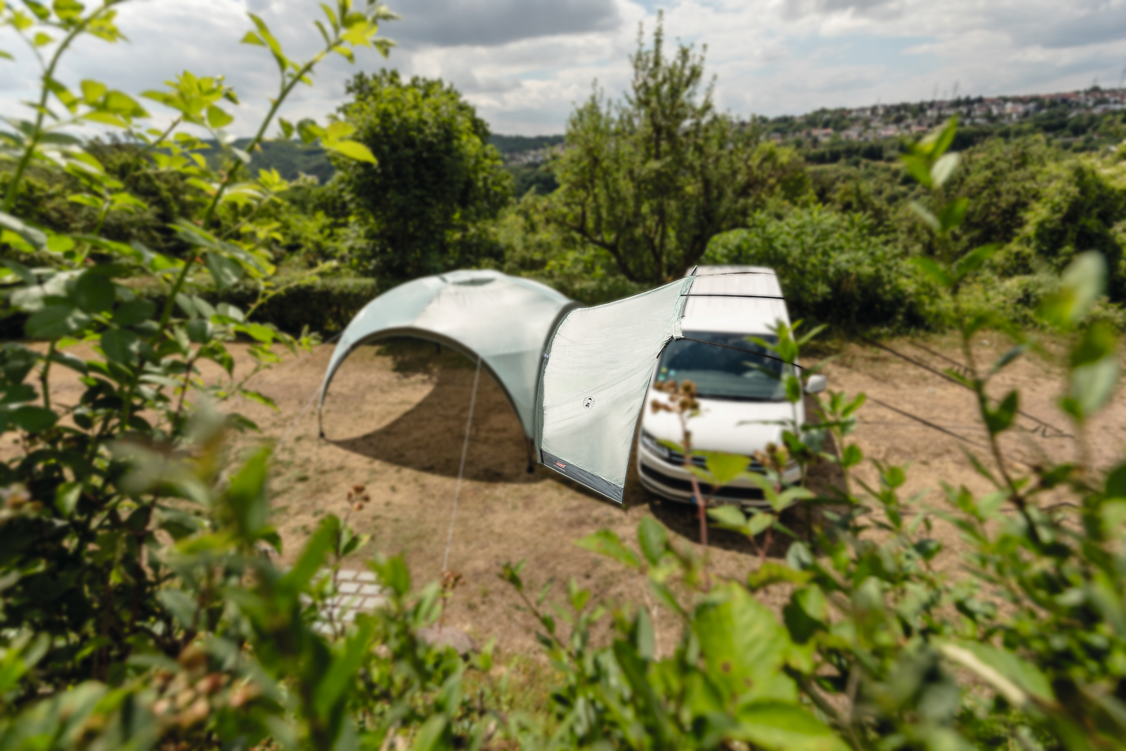 Verbindet das Event Shelter Pro und Vans mit und ohne Reling.