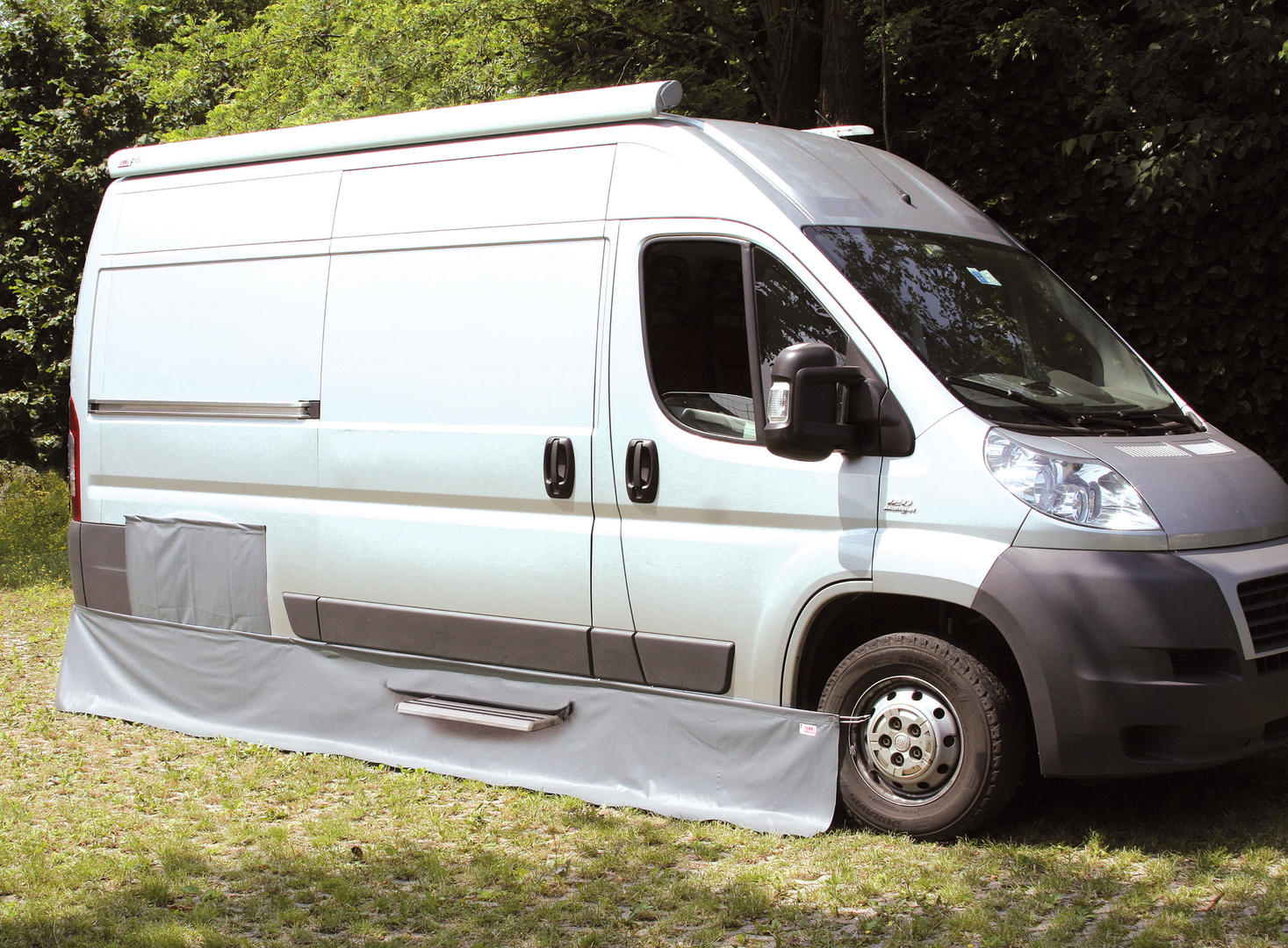 Skirting Fiat Ducato. Mit Reifenabdeckung, elastischen Gurten und Magneten.