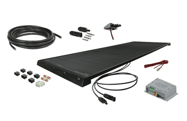 Innenraumkabel (6 m) liegen ebenso bei, wie das aufklebbare MC4 Dachdurchführung-Set. Aufsteckbare Halteclips sowie Wago-Klemmen und ein EBL-Steckverbinder werden mitgeliefert, um den Solarstrom in die