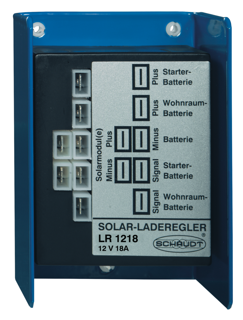 Der Solar-Laderegler LR 1218 begrenzt und regelt die Ladespannung aus den Solarmodulen.
