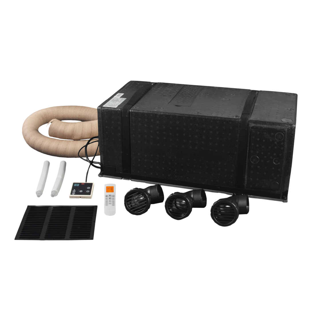 Die Staukastenklimaanlage wurde speziell für mittelgroße Wohnwagen und Wohnmobile entwickelt, bei denen es keine praktische Möglichkeit gibt, eine Dachklimaanlage zu installieren.