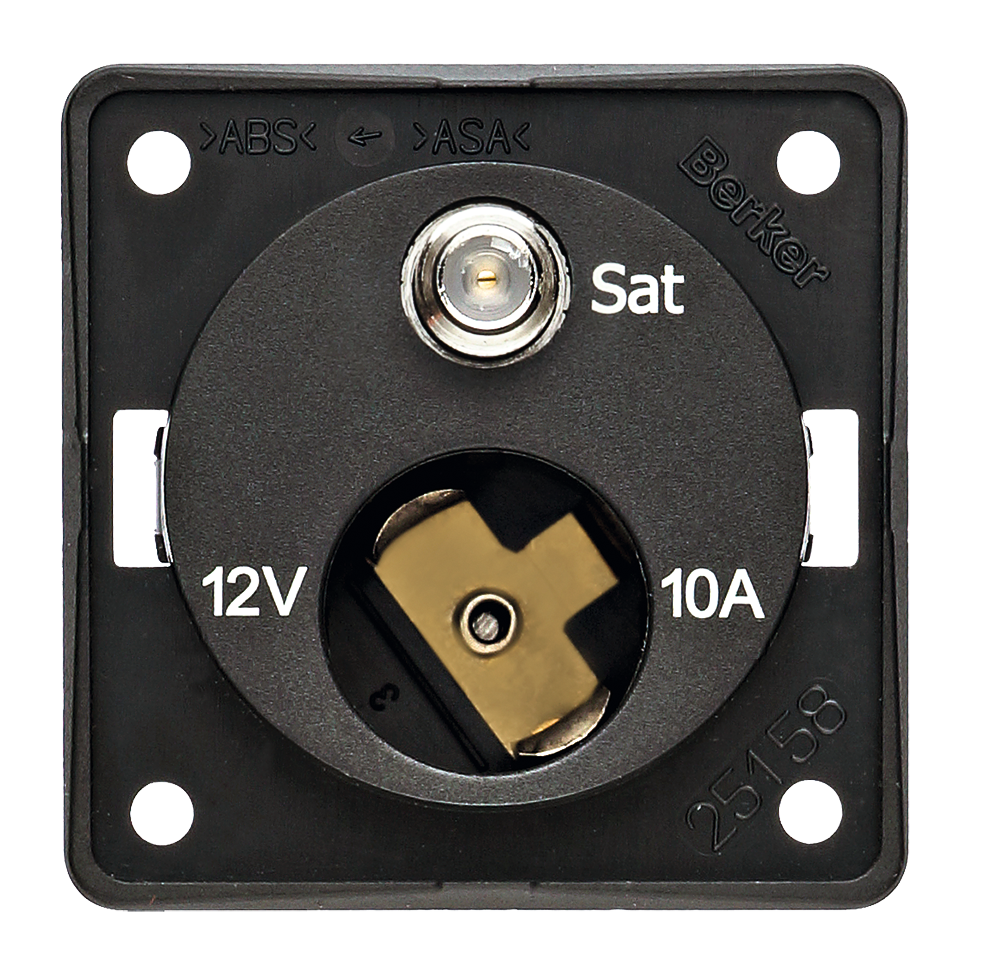 Steckdose 12 V/max. 10 A und SAT-Verbinderdose mit F-Doppelbuchse.