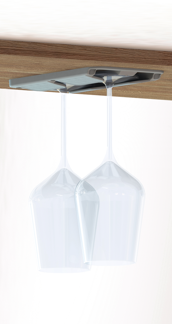 Stielglashalter zum sicheren Einschub von zwei Gläsern mit Stielfuß.