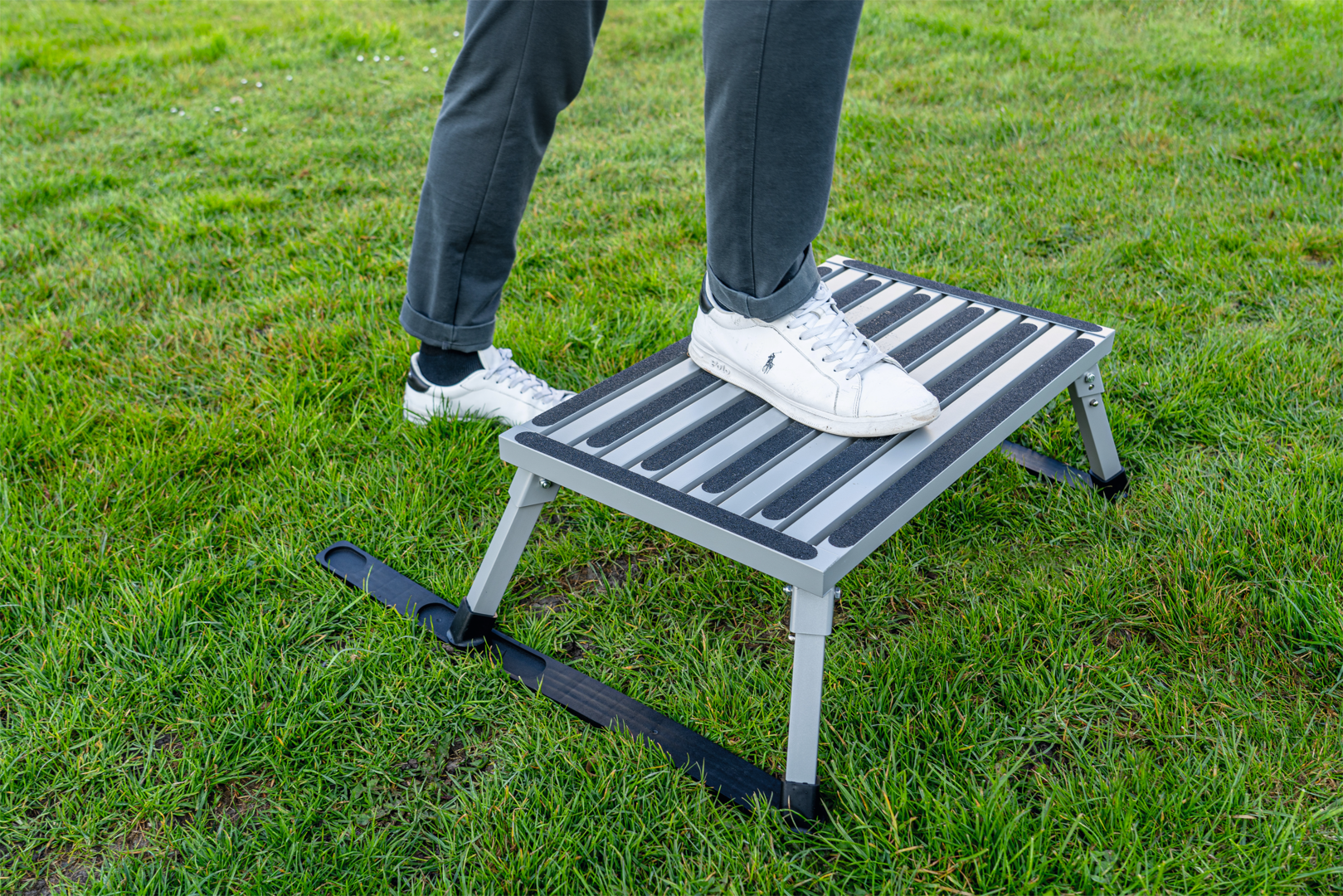 Die Tasmania Stützen geben der Trittstufe zusätzliche Stabilität und verhindern, dass die Trittstufenbeine im weicheren Boden versinken.