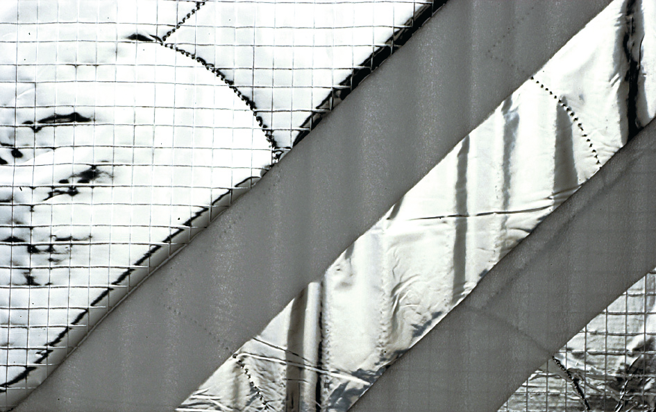 Drei Schichten reflektierende Folien und zwei Schichten Schaumstofflagen.