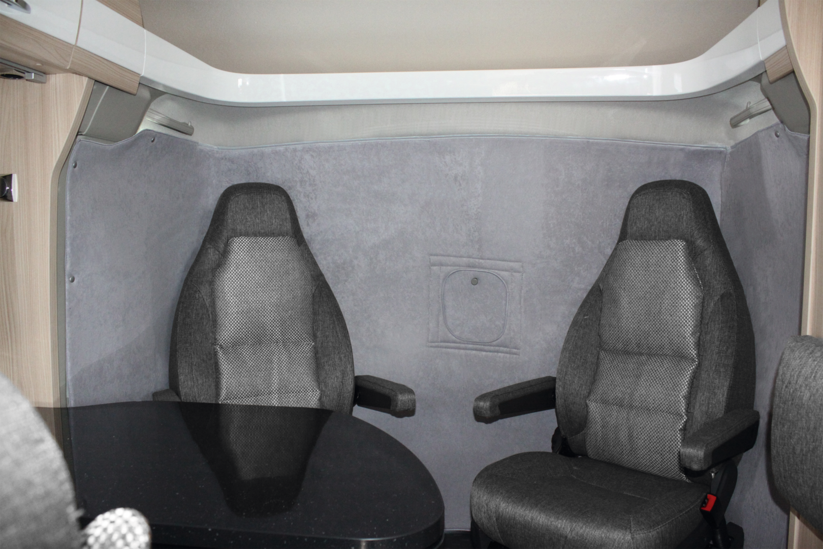 Dieser U-förmige Thermovorhang trennt den nicht isolierten Bereich, wie die Fensterflächen, den Bereich der Fahrerhaustüren, das Armaturenbrett sowie den Fußraum in ganzer Höhe vom Wohnbereich und schützt mit seiner ca. 8 mm PU-Schaum-Isolierung vor eindringender Kälte und Wärmeverlust im Wohnbereich.