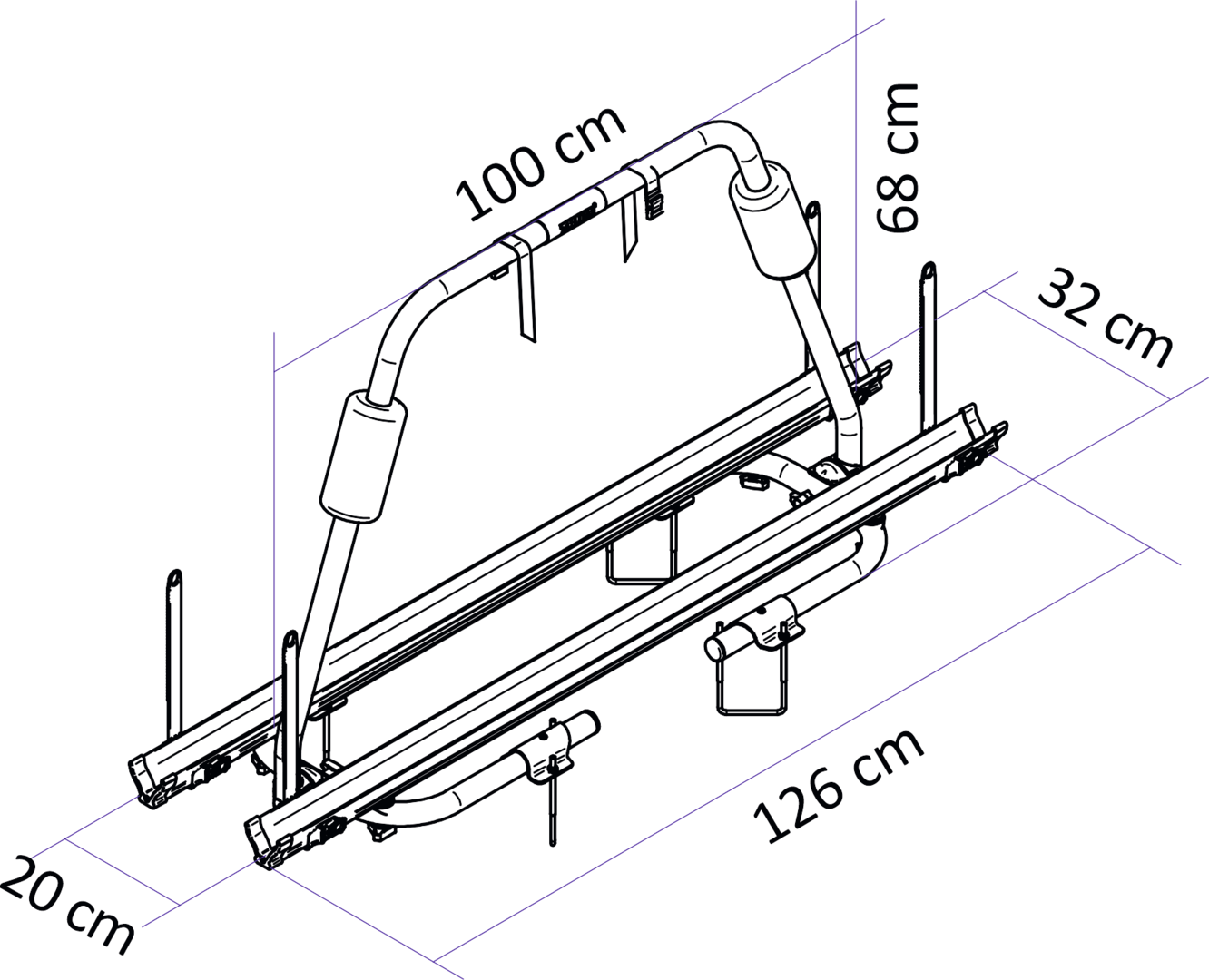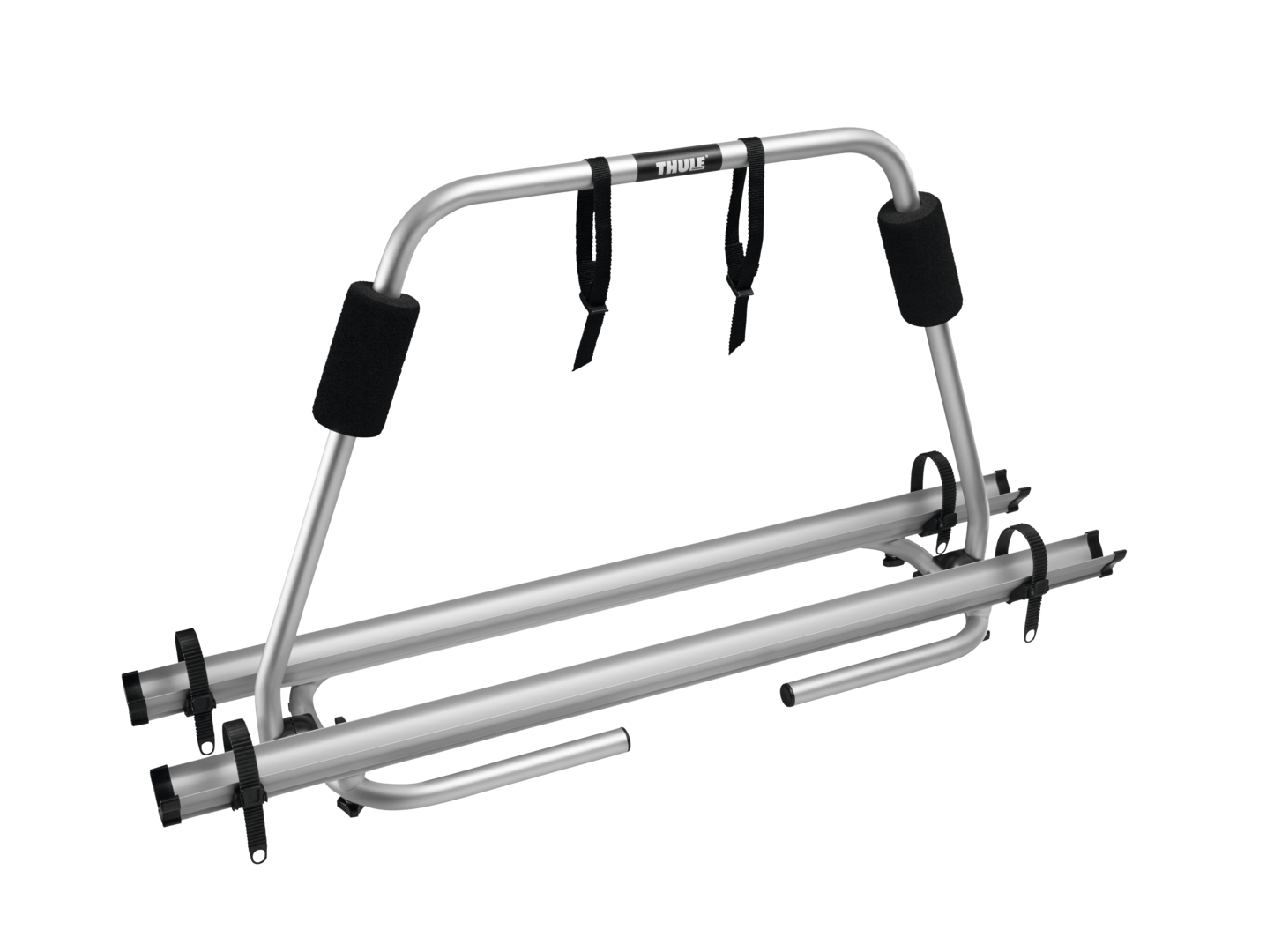 Deichsel-Fahrradträger mit Schaumstoff-Schutzpolster (verhindert, dass Fahrräder beim Transport beschädigt werden) und Fahrradschienengurten (einfachere Fahrradsicherung).