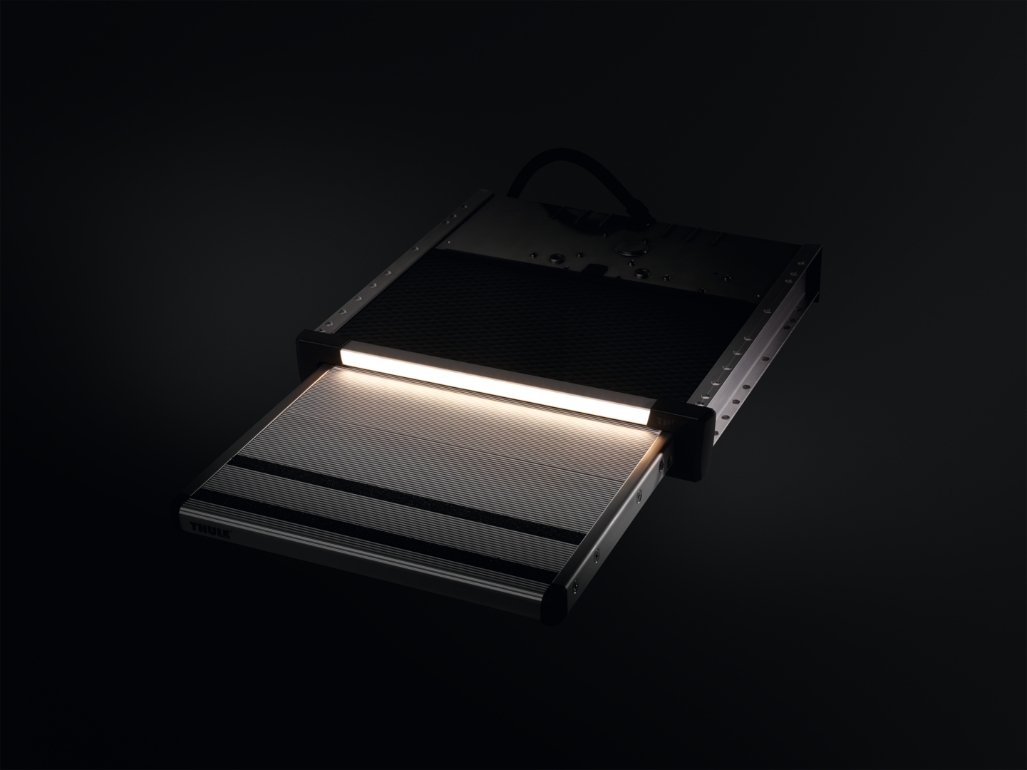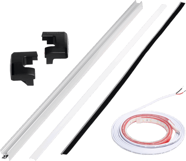Kann nachträglich an einer Slide-Out Step V12 ab Modelljahr 2013 und originaler Frontblende oder an einer Slide-Out Step V18 installiert werden. Flexibler LED-Streifen von 700 mm (kürzbar für 400/550 mm).