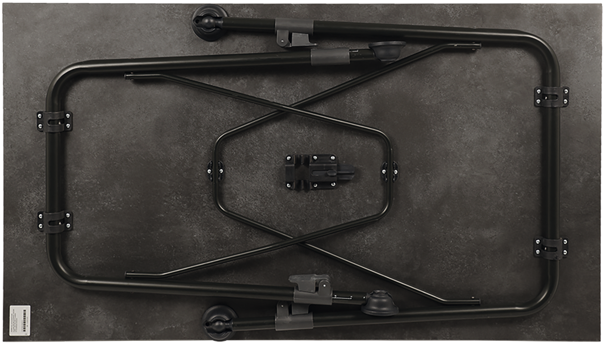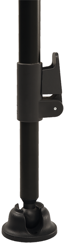 Robuster Tisch mit kratzfester und hitzebeständiger (bis 180 °C) Sevelit-Tischplatte und Stahlgestell. Alle Tischbeine sind stufenlos von 63 – 83 cm teleskopierbar. Belastbarkeit max. 50 kg.