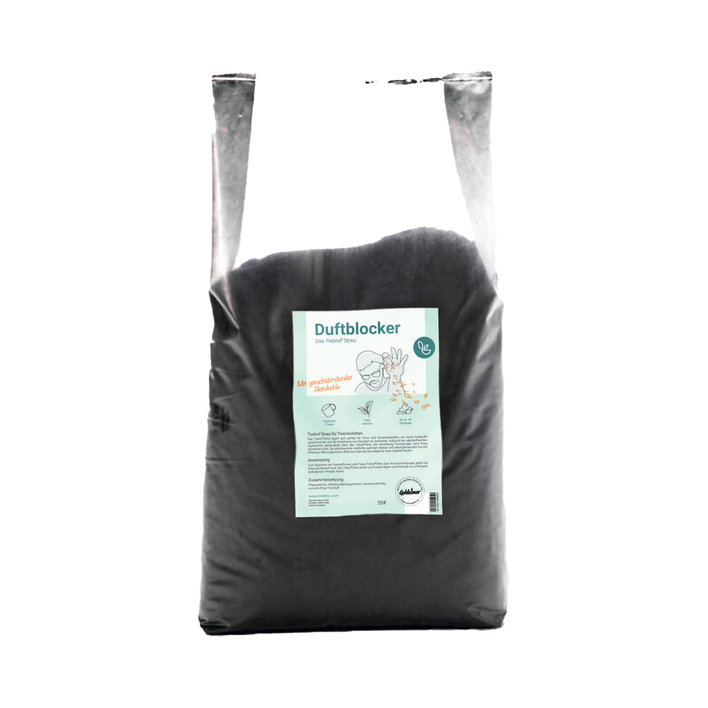 Spezielles Trenntoilettenstreu mit organischen Bestandteilen und Aktivkohle.