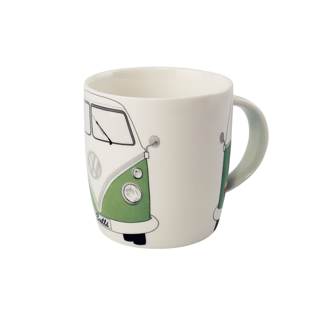 Große Kaffeetasse aus New Bone China mit witzigem VW T1 Bulli Design.