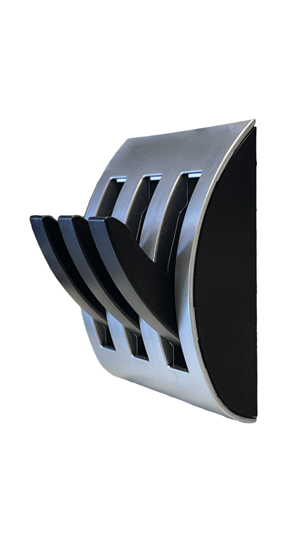 Material Kunststoff, schwarz/silber. Max. Belastbarkeit 4 kg.