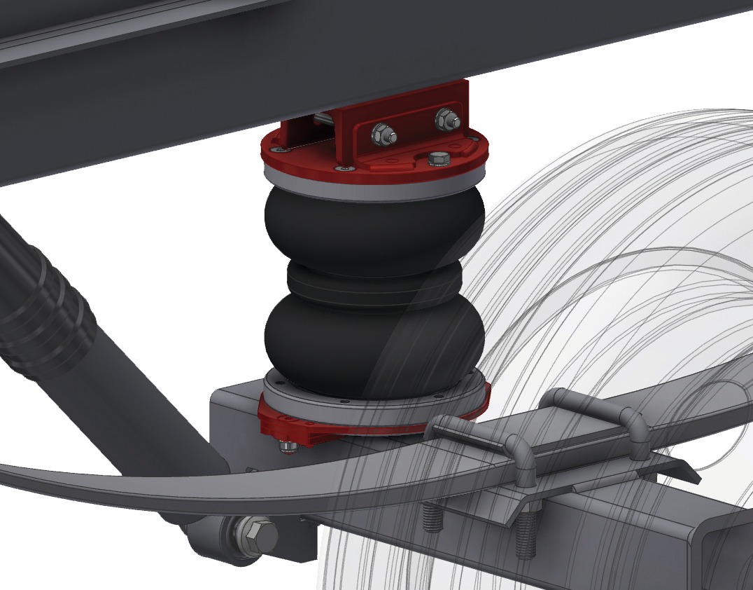 Zusatzluftfeder für die Hinterachse. Neben den Originalfedern werden kräftige Zusatzluftfedern montiert. Es gelten die gleichen Eigenschaften wie bei den Zusatzschraubenfedern beschrieben.