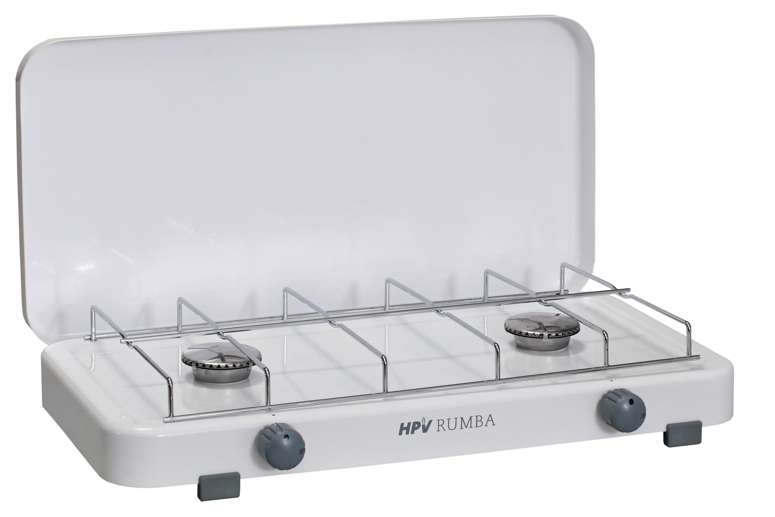 Hochwertiger Gaskocher mit zwei stufenlos regelbaren Brennstellen.